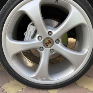 На авто установлены оригинальные диски TECHART R-22 шины Continental 295/30/22 ( Стоимость 150 тысяч рублей)