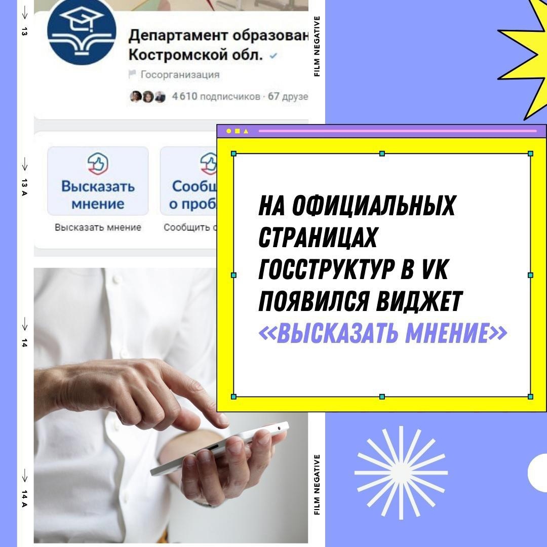 Виджет «Высказать мнение» можно найти в пабликах органов государственной власти Костромской области в соцсети ВКонтакте.