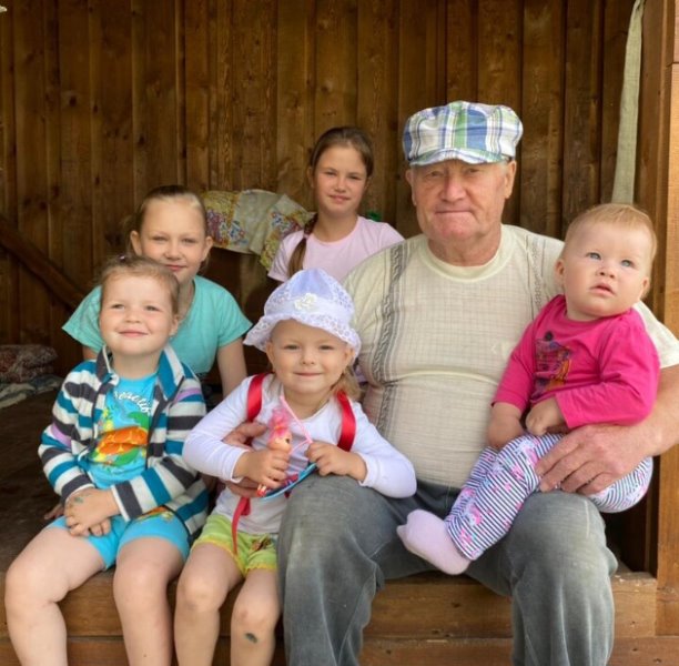 На фото Роман Иванович Чернышёв с внучками и правнучками.
