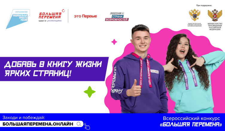 Конкурс «Большая перемена» является флагманским проектом Российского движения детей и молодёжи «Движение Первых» и входит в линейку президентской платформы «Россия – страна возможностей». За время проведения к проекту присоединились уже более 5 миллионов человек.