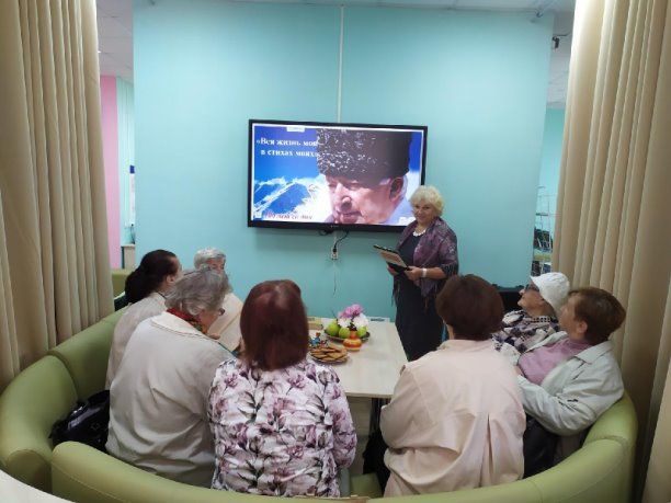 Нина Анатольевна Белокурова почитала свои любимые стихи, отметила, что творчество Гамзатова – целое явление в поэзии. Его стихи наполнены оптимизмом. Лидия Сергеевна Гирко принесла фотографии прошлых лет, на которых она в составе вокальной группы исполняет песню Расула Гамзатова «Журавли». Нина Николаевна Лебедева рассказала, как она первый раз услышала песню «Журавли» и у неё «побежали мурашки по коже».
