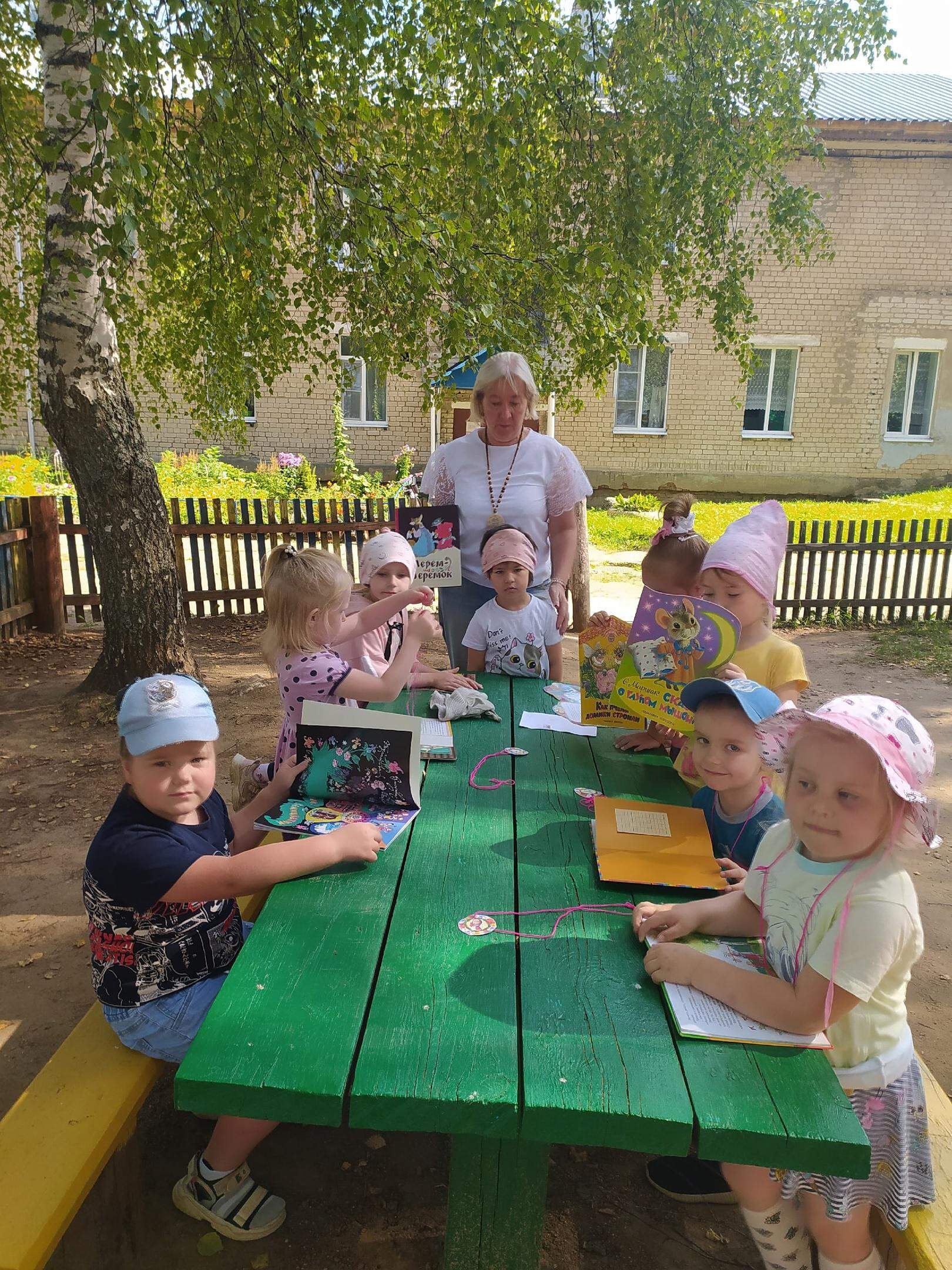 «Литературная песочница» — это своеобразный выездной летний читальный зал, где малыши могут посмотреть книги или журналы, послушать сказку или детские стихи, порисовать, поиграть, самим рассказать стихотворение.