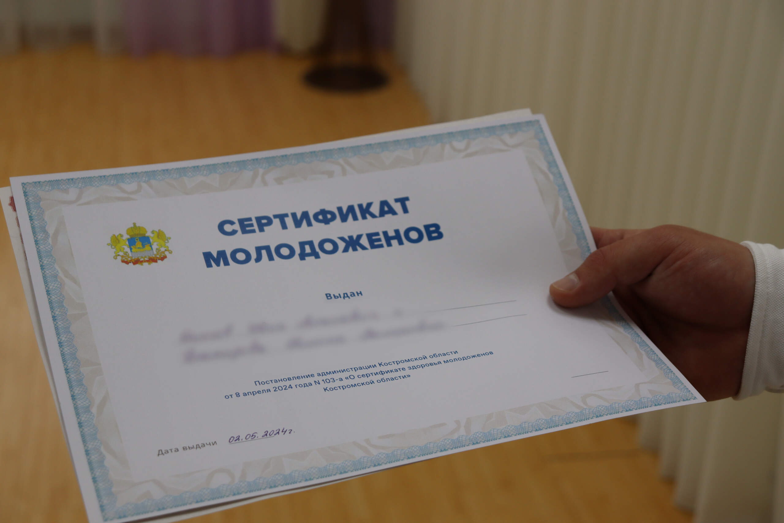 В Костромской области вручены первые сертификаты молодоженов