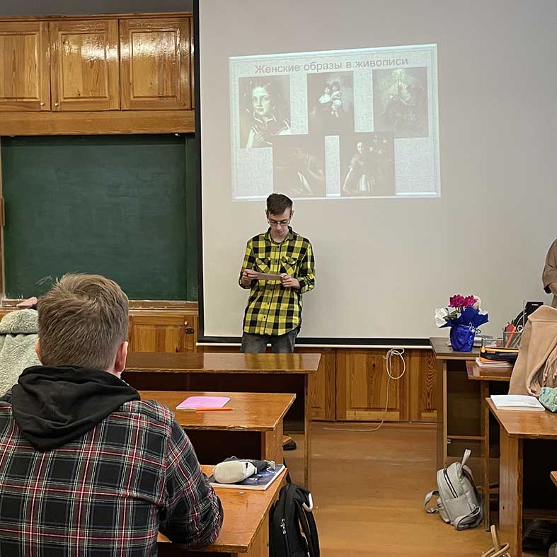 Участниками гостиной стали студенты групп 1-5 и 1-6. Студенты узнали историю возникновения праздника, говорили о значимости и особой ценности женщины в жизни. Ребята слушали романс «Я помню чудное мгновение» (муз. М.И. Глинка, сл. А.С. Пушкин), неповторимые песни в исполнении Муслима Магомаева «С любовью к женщине» и Елены Юдиной «Две дороги», знакомились с произведениями художников, слушали и читали стихи поэтов прошлого и современности. Вспомнили о подвиге жён декабристов, отправившихся вслед за своими мужьями в Сибирь. Именно этот поступок показывает нам, насколько самоотверженно поступали русские женщины во имя любви.