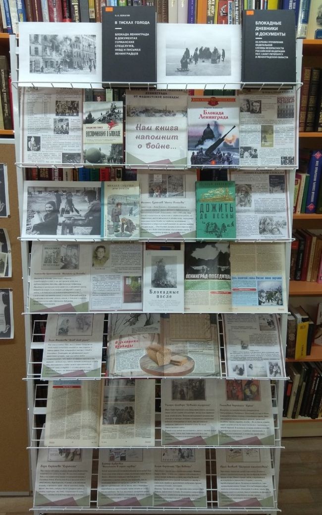 Вниманию читателей библиотеки г.п.п.Чистые Боры была предложена книжно-иллюстрированная выставка «Нам книга напомнит о войне», рассказывающая о беспримерном подвиге осажденного фашистами Ленинграда, о мужестве и героизме ленинградцев, об их несгибаемой силе духа, мужестве в эти суровые блокадные дни и вере в жизнь. Выставка познакомит читателей с книгами, повествующими об этих страшных днях, о том, как жители города боролись с холодом и голодом и как выстояли и победили. Книжно-иллюстрированная выставка представит перед современными читателями одну из героических и трагических страниц отечественной истории блокадного Ленинграда.