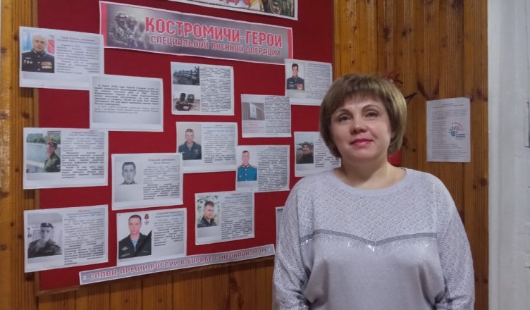 В библиотеках района были проведены беседы у стенда «Костромичи — герои СВО». Сотрудники познакомили присутствующих с примерами героизма и мужества представителей нашего региона. Так, в конце февраля библиотекарь Екатерина Михайловна Галкина провела беседу для учеников старших классов.