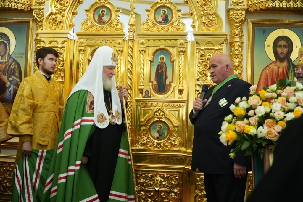 «Уважаемый Владыка! Спасибо за то, что восемь лет назад, посетив Кострому, Вы благословили нас на воссоздание храмового комплекса Костромского кремля, который был разрушен в 30-е годы, что оставило раны на сердцах многих костромичей. Воссоздание храмов — это великое духовное событие и украшение города. Колокольня Богоявленского собора, вновь, как много лет назад, стала доминантой всей центральной части Костромы. Мы благодарны Вам, и это я говорю за всех костромичей, за сегодняшнюю службу, очень красивую и торжественную. Храмовый комплекс завершен не до конца — не восстановлен еще Успенский собор. Святейший Владыка, прошу поручить и благословить нашего благодетеля Виктора Ивановича Тырышкина на достройку храмового комплекса. Спасибо Вам за все!», — обратился Сергей Ситников.