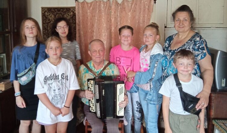 Недавно в гости к музыканту пришли директор сельского дома культуры Наталья Лямина, библиотекарь Ирина Зотова и местные ребята, участники разновозрастного отряда «Русичи».