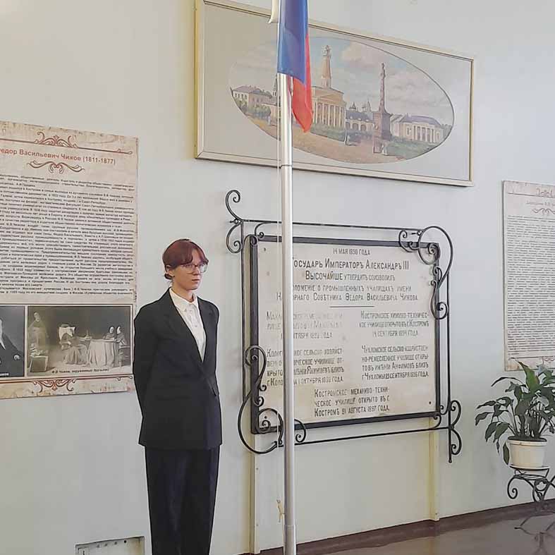 13 марта в малом зале КЭТ имени Ф.В. Чижова прошла традиционная линейка, посвященная поднятию флага РФ, на которой присутствовали студенты 2 курса, кураторы групп и администрация техникума. Почетное право для поднятия флага РФ было предоставлено отличнику учёбы, участнику областных и Всероссийских олимпиад, претенденту на стипендию Правительства РФ на 2023-2024 учебный год, студенту группы 2 – 1 ХАО, - Голицыной Александре.