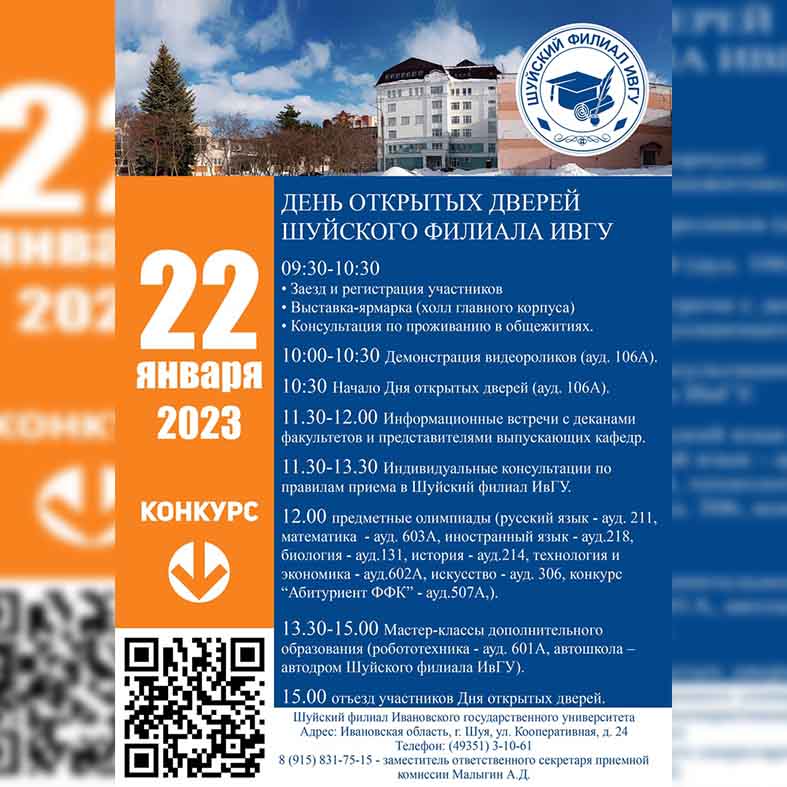 22 января – День открытых дверей в Шуйском филиале Ивановского государственного университета. Программа представлена на сайте.