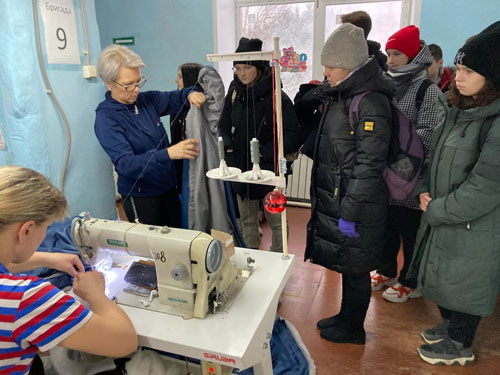 В этом же месяце учащиеся девятого класса опять-таки с Ольгой Александровной ходили на швейное предприятие в нашем городе – ООО «Чайка». Здесь руководитель предприятия Татьяна Моисеевна Головцова (на фото 2) рассказала и показала, как идёт процесс изготовления спальных мешков от раскройки до готового изделия. Учащиеся увидели, как дружно и слаженно трудятся работники в цехах.
