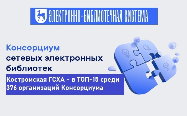 Костромская ГСХА вошла в ТОП-15 по популярности научно-образовательного контента в Консорциуме сетевых электронных библиотек и занимает 8 позицию среди 376 вузов и НИИ России и бли