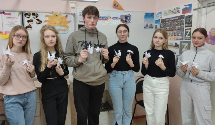 София Герасимова провела мастер-класс по изготовлению бумажных журавликов в технике оригами. Учащиеся вырезали из бумаги и разместили на окнах белых журавликов. Каждая птица — это знак искреннего сочувствия и сожаления о людях, которые стали жертвами бесчеловечного поступка.