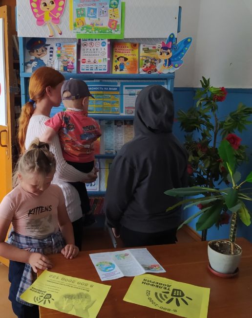 Около стенда с детьми и подростками периодически проводится профилактическая беседа «Предупреждён, значит вооружён!». Вместе с ребятами мы дружно обсуждаем правила дорожного движения и разбираем опасные ситуации, которые могут возникнуть при катании на велосипеде или на роликах; пожарной безопасности и обращения с электроприборами; правилами личной безопасности на улице, на воде и в лесу. Также мы говорим о том, что мир вокруг полон опасности. И чтобы не стать жертвой, нужно запомнить элементарные правила поведения. Как вести себя, если с вами пытается заговорить незнакомый человек и куда-то вас увести. Разбираем ситуации, которые могли-бы случиться. Что делать в этих случаях. Ребятам даётся информация о том, что действует телефон доверия и адрес электронной почты тех, кто может им помочь в случае беды, которые также расположены на информационном стенде в библиотеке.