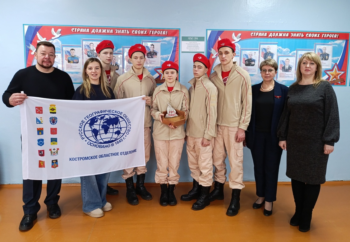 Председатель Костромского отделения РГО Дмитрий Шнур и юнармейцы Судиславля. Фото Костромское отделение РГО«Марафон памяти к 80-летию Победы в Великой Отечественной войне» Костромского областного отделения РГО, проведенный 27 января 2025 года совместно с администрацией Судиславского муниципального района, стал первым в цикле патриотических мероприятий в тот день открытого воспитательного пространства «Помня прошлое - создаем будущее» и обновленного школьного музея «Родники». Судиславская школа является одним из победителей грантового конкурса, объявленного департаментом образования Костромской области при поддержке благотворительного фонда «Будущее сейчас» по созданию и развитию детских воспитывающих сообществ.