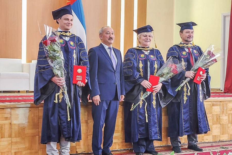 В рамках международных встреч прошло торжественное вручение звания «Почётный профессор КНАУ им. К.И. Скрябина», ректору Костромской государственной сельскохозяйственной академии, д.т.н., профессору Михаилу Станиславовичу Волхонову и ректору Новосибирского государственного аграрного университета, члену-корреспонденту РАН, д.э.н., профессору Евгению Владимировичу Рудому, которые внесли значительный вклад в образование и науку.