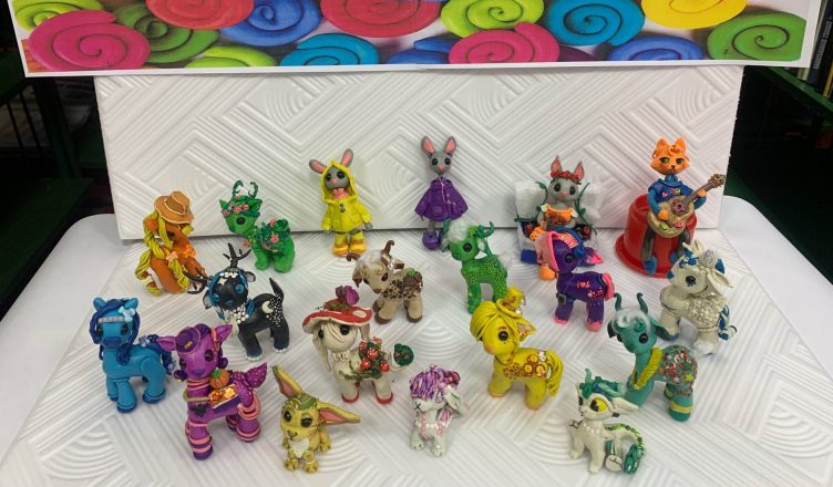 На выставке представлено 19 пластилиновых красочных работ. Все работы уникальны, они пробуждают вдохновение и воображение, дают возможность расправить крылья творчества и улететь на них в волшебный мир. Главные герои творчества Марины — различные сказочные персонажи животного мира: милые, добрые кролики и коты-символы наступившего 2023 года, игривые оленята, забавные козлики, симпатичные единороги и зайчата, озорные дракончики, яркие пони… Среди представленных работ есть как одиночные фигурки, так и композиции.