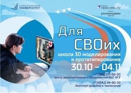 - Наша «Школа 3D моделирования и прототипирования «Для СВОих» пройдет с 30.10.2023 по 4.11.2023 включительно.
