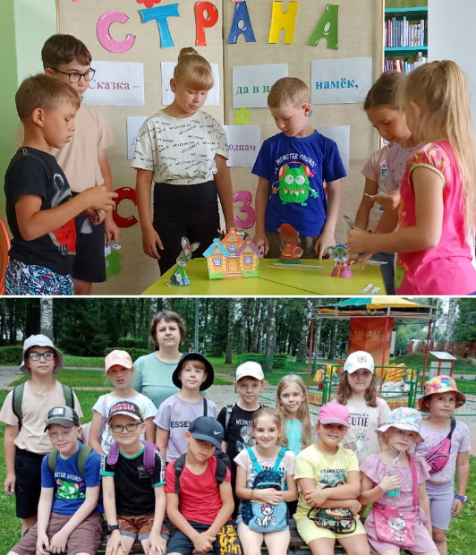 На игровой программе «В гостях у сказки» дети путешествовали по станциям, отгадывали загадки, принимали участие в конкурсах и эстафетах. По окончанию игры ребята сами создавали и обыгрывали кукольные спектакли «Три поросёнка», «Красная шапочка», «Теремок», а также нарисовали своих любимых сказочных героев.