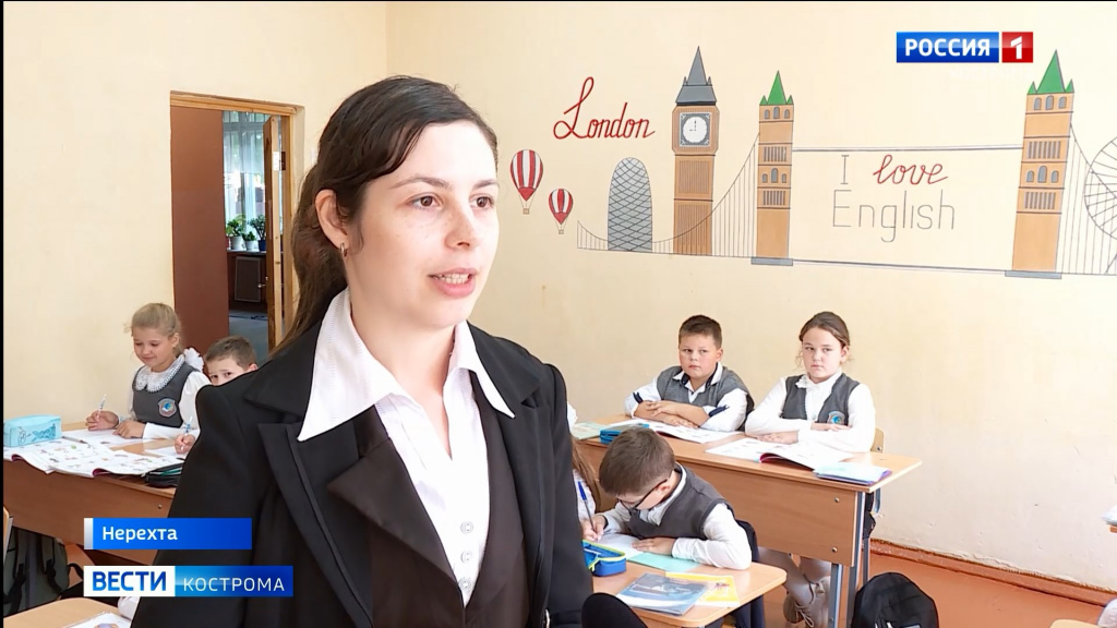 Первый раз в новый класс - пришла сегодня педагог по английскому Анастасия Филиппова. В нерехтскую школу №3 она пришла по программе «Земский учитель», переехала из Саратовской области. Миллион подъемных планирует потратить на покупку жилья, и осесть в Нерехте навсегда.