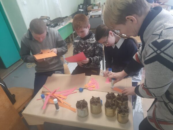 Селезеневские школьники вместе с педагогами трудились активно и дружно. Объем работы был проделан огромный. Юные мастера подготовили банки, накололи парафин, сделали более 70 заготовок для свечей и наклеили на готовые свечи пожелания для бойцов.
