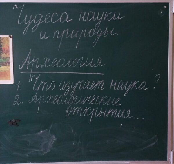 От руководителя кружка «Наука и природа», созданного на базе образовательного центра «Точка Роста», Галины Владимировны Даниловой они узнали, чем занимаются археологи, посмотрели ролики об их открытиях.