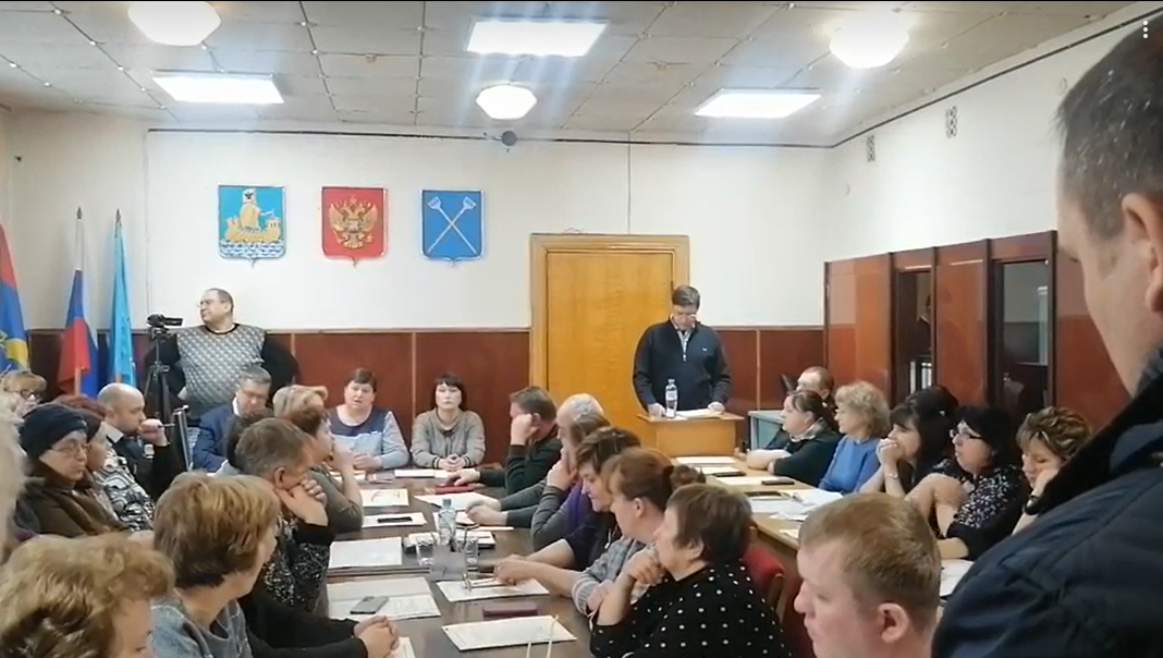 Пока народ, который самоорганизовался, собирался в фойе и ждал, когда его позовут, незаметно стрелки часов приблизились к 10.00, а никто никого звать и не думал. Немного поразмыслив, люди решили идти в малый зал. Когда делегация неравнодушных граждан в составе около тридцати человек (или чуть более) поднялась по лестнице и остановилась в открытых дверях, стало ясно, что заседание вовсю идёт, а прозорливая председатель «Единой России» Бахвалова О. В. демонстративно показывала экран своего телефона, на котором было время 10ч.03 мин.