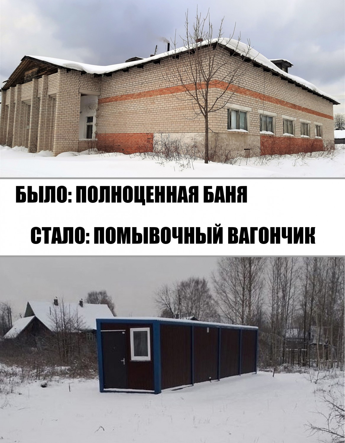 И напоследок… буквально вчера стало известно, что с аналогичной проблемой рискуют столкнуться жители Нерехты. Муниципальное предприятие из-за многомиллионных долгов может закрыть общественную баню — из-за неуплаты в ней уже отключили газ. Ничего не напоминает, друзья? Наверное, нерехтчан в будущем ждёт такой же модульный вагончик вместо бани. А единороссы во власти, которых будут уже назначать на должность глав, а не избирать всенародно, скажут — вот вам помывочная. Вода из душа льётся, вот и мойтесь.
