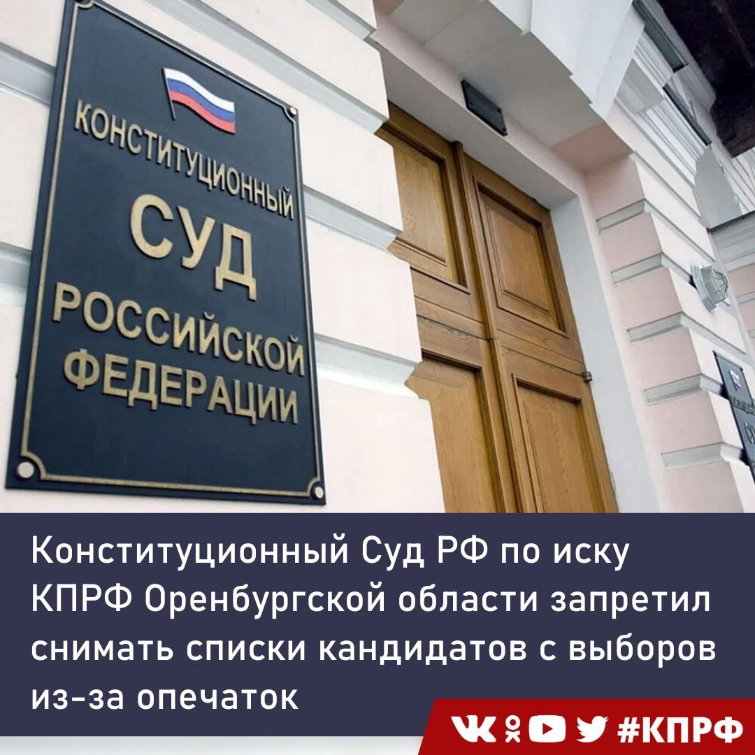 Теперь опечатки не станут основанием для снятия кандидатов с выборов — Конституционный Суд РФ по иску КПРФ Оренбургской области запретил это делать. А, как известно, решения Конституционного суда окончательно и не подлежит обжалованию. Хоть эта история и началась в Омске, но польза от неё будет во всей стране. В прошлом году Оренбургские коммунисты столкнулись с тем, что кандидатов от КПРФ массово не допустили до выборов. В заверении представленного партией списка кандидатов было отказано по той причине, что в бюллетенях для внутрипартийного голосования, протоколе Счетной комиссии и прочих бумагах фамилия одного из кандидатов была написана с ошибкой.