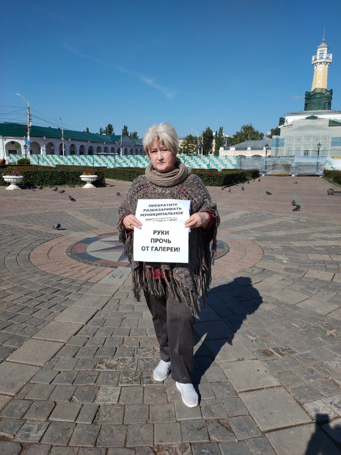 На сегодняшний момент остаётся единственный способ выражения протеста — это одиночные пикеты. До них власть пока не добралась. Коммунистка Марина Колданова накануне отказа стояла с плакатом на Сусанинской площади в защиту муниципальной галереи.