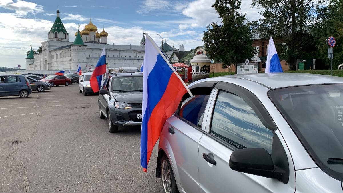 В городе Костроме День флага начался с автопробега.