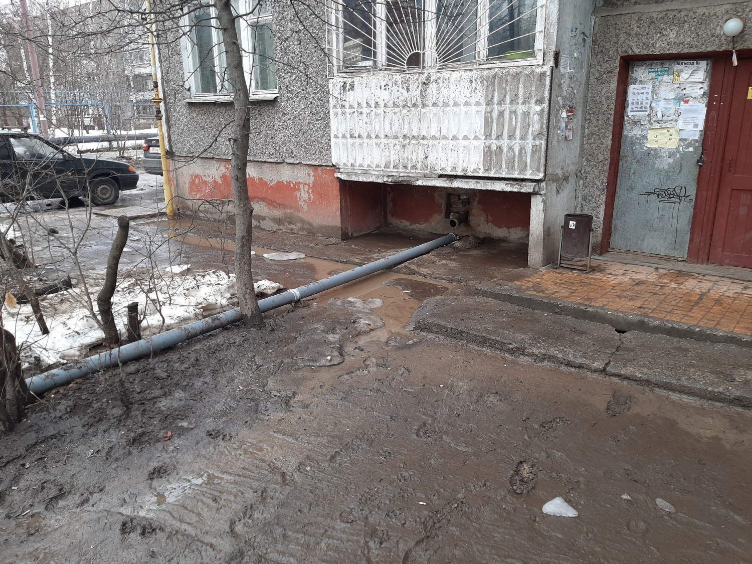 Ранее мы рассказывали вам, как местные жители обратились в Общественную приёмную КПРФ с просьбой помочь добиться строительства ливневой канализации. Ведь из-за её отсутствия происходит то, что вы можете сами увидеть на фотоснимках. Таяние снега или дожди приводят к затоплению территории. Невозможно ни пройти, ни проехать. Также вода стекает в подвал, разрушает фундамент домов. И это проблема не какого-то одного небольшого дома, а целых шести многоквартирных домов. Жители более 20-ти лет пытаются добиться строительства ливневой канализации, куда только не обращались — и в администрацию, и к своим единороссам-депутатам, и всё без толку. В итоге дело сдвинулось с мертвой точки, когда за него взялись мы.