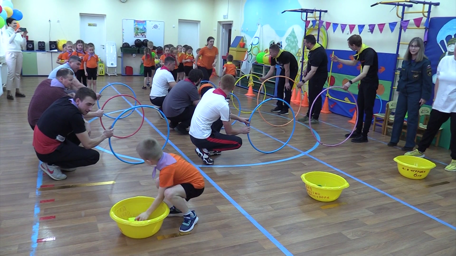 Семейные состязания прошли во 2-м детсаду Костромы. Для взрослых устроили пожарную эстафету, где было необходимо на скорость надеть боевую одежду пожарного и с помощью теннисных ракеток донести зараженный предмет - его изображал шарик - до ворот. Это испытание папы проходили под чутким руководством пожарных. Затем семьям предстояло пересечь условно разлившуюся реку, спасти людей из горящего дома и потушить сообща условный пожар. По итогам соревнований победила дружба.
