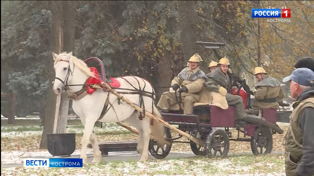 Вот так 200 лет назад на конной тяге из пожарной каланчи на Сусанинской площади выезжала на вызов первая профессиональная пожарная команда. Даже лошади подобраны в масть. В 1823 году они были именно светло-серые. Вместо мощных современных насосов - ручная помпа. Вода в брандспойт качалась из ближайшего к горящему дому колодца. Старинный транспорт восстановили сами пожарные.