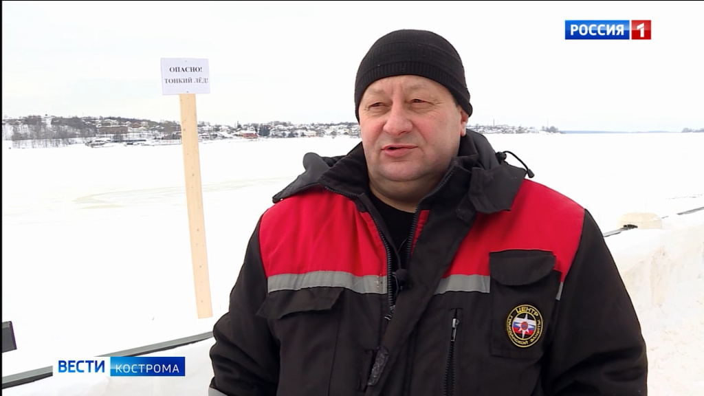 Юрий Конорезов, начальник аварийно-спасательного отряда Центра гражданской защиты г. Костромы: «Люди у нас ходят до самого последнего. Два года назад у нас рыбак ходил удить рыбу лежа на дощечках. Потому, что лед проваливался, даже не держал его, когда он сидит. Еще снимали недавно рыбака в районе судостроительного завода. Люди у нас не хотят безопасно отдыхать».