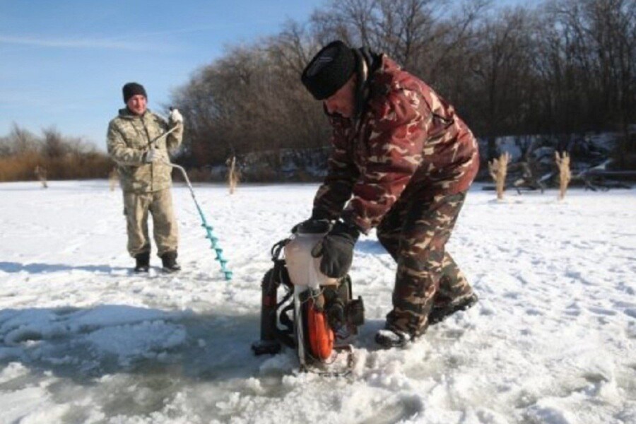 На льду прорезают лунки. Фото: пресс-служба областной администрации.