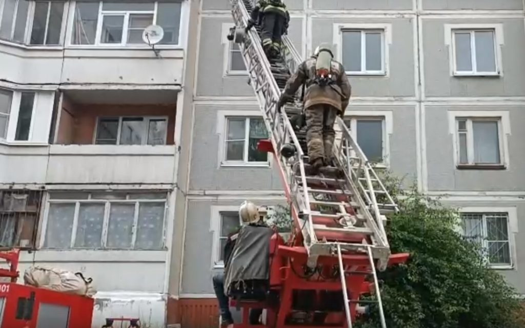 Прибывшие на место происшествия сотрудники МЧС с помощью автолестницы попали в квартиру о потушили остатки еды.