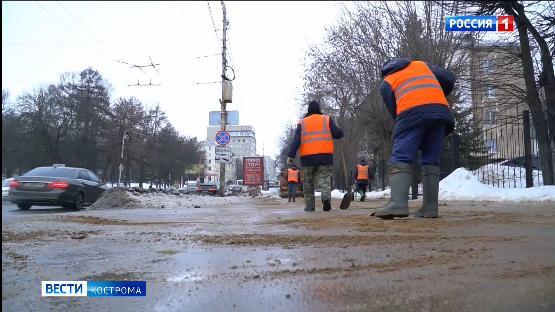 Александр Сутягин, директор МКУ г. Костромы «Дорожное хозяйство»: «Будем очень стараться. Но весь город дня четыре точно нужно, чтобы просыпать. В этом году погода аномальная. Это уже пятый или шестой дождь при минусовой температуре. Я такой погоды не помню. А работаю я в этой сфере уже больше 26 лет».