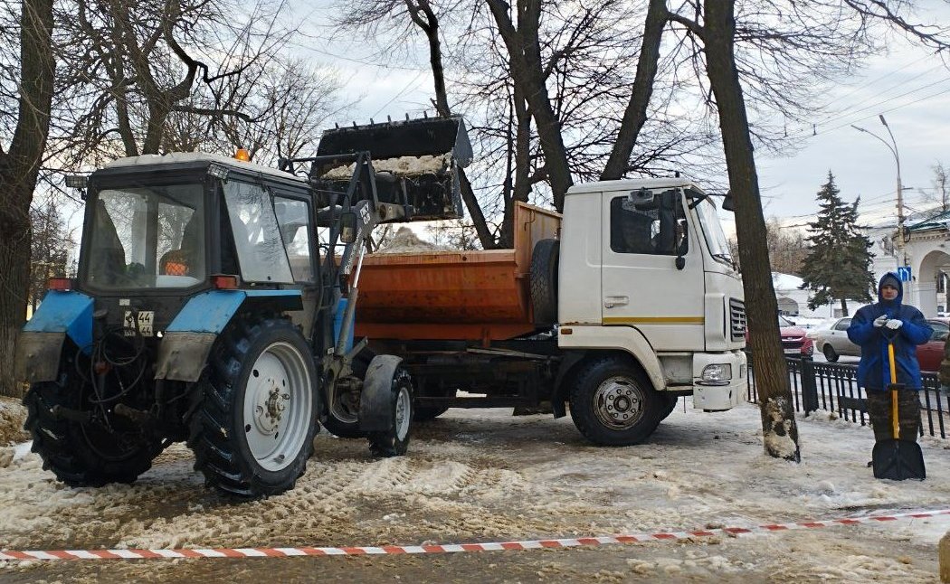 Кроме того, в ночное время была организована механизированная уборка тротуаров, остановок и пешеходных переходов на площадях Сусанинской и Широкова, в районе Торговых рядов, на улицах Титова, Крестьянской, Лермонтова, Овражной, Подлипаева, Чайковского и других участках улично-дорожной сети. Работы по уборке и посыпке проезжей части на основных улицах, а также вывозу снега с Советской продолжаются.