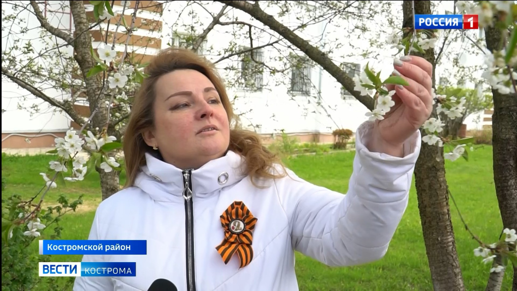 Наталья Журавлёва, жительница пос. Караваево: «Вот эта вишня растёт у нас на солнечной стороне. А с северной стороны её прикрывает дом. Она зацвела. Цвет набрала. И сейчас уже отцветает. И практически весь период цветения пришёлся на холода. А вот совсем рядом, на северной стороне, у нас вишня только зацвела – завязались бутончики».