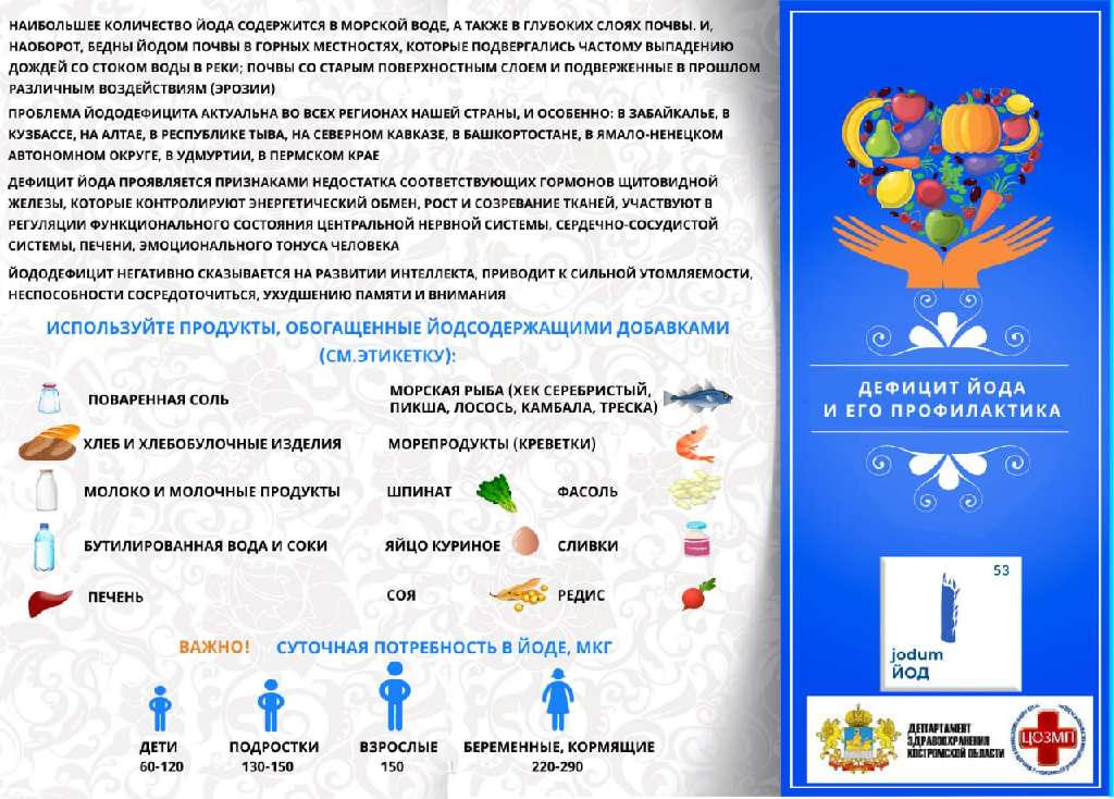 Потребление йодированной соли способствует профилактике эндокринных нарушений и заболеваний нервной системы новорожденных и маленьких детей. Рекомендованное количество йода человеку в соответствии с потребностями организма человека – 150-200 мкг/сут., что обеспечивается 4-5 граммами йодированной соли.