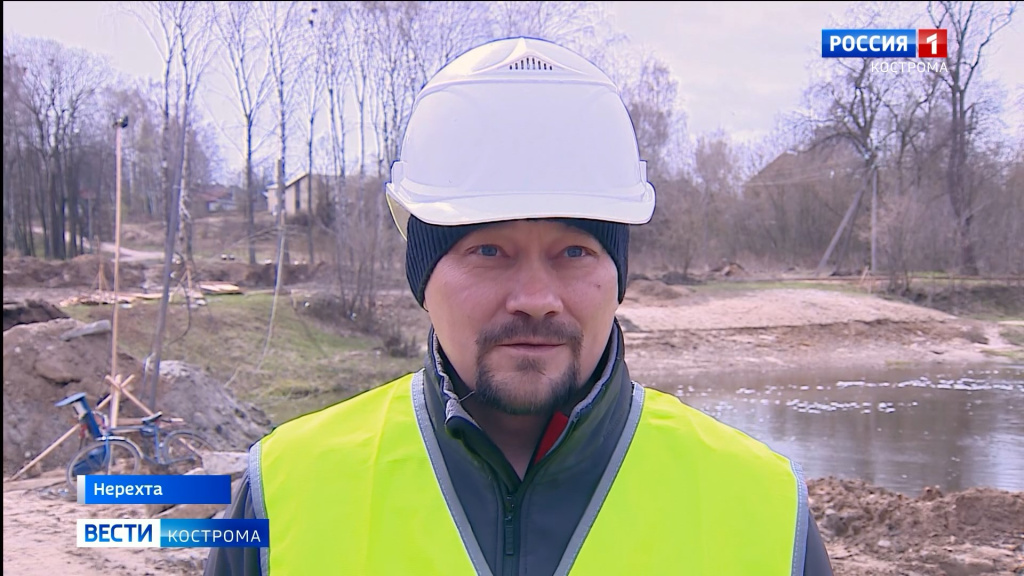 На берегу бурной от весенних вод реки Нерехты рабочие московской фирмы-подрядчика вяжут арматуру для бетонных перекрытий и свай. Ряд опор будущего моста уже установлен. За качество отвечаем - говорят работники. Фирма возводит мосты по всей стране. Участвовала и в крупных проектах. В её послужном списке, например, мост «Золотые ворота» во Владивостоке. Для небольшого нерехтского моста выбран типовой и проверенный временем проект, говорят строители. Сдать его необходимо в декабре этого года.