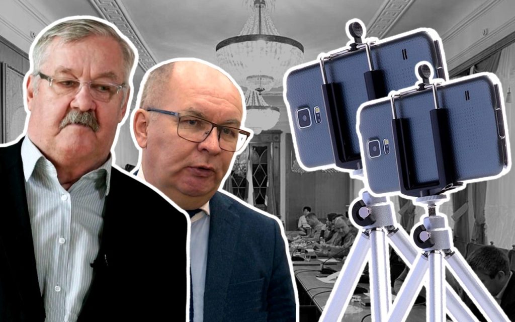 26 октября перед очередным заседанием Думы депутаты Михаил Елохин и Николай Сорокин, как обычно, установили телефоны для видеосъёмки.