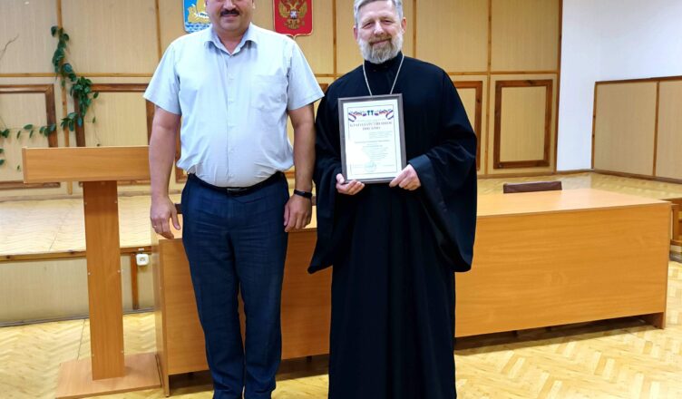 Глава Кадыйского муниципального района Е.Ю. Большаков вручил Благодарственное письмо администрации Кадыйского муниципального района иерею храма Успения Пресвятой Богородицы с. Рубцово Вешкинского сельского поселения отцу Владимиру Поликарпову, за проведённую исследовательскую работу по истории церквей, храмов и монастырей Кадыйского района, передачу материалов исследования в архив Кадыйского муниципального района. В соответствии с личным заявлением Владимира Николаевича, после включения его квалификационной работы «Храмы Кадыйского района Костромской области» в фонд муниципального архива, она будет использоваться как архивный документ.