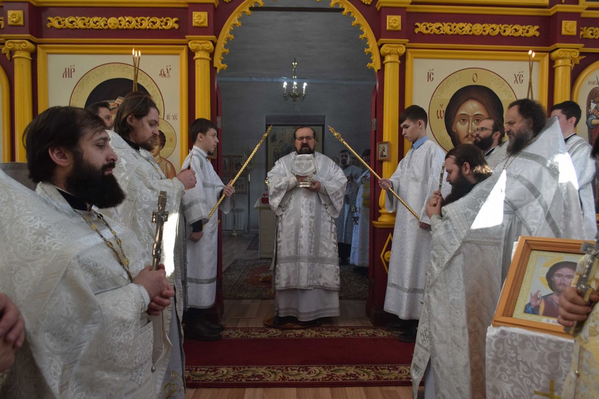 Преосвященнейший владыка обратился к духовенству и прихожанам с архипастырским словом. Он отметил важность и значимость состоявшегося исторического события для всего населения округа. В память о совершившихся торжествах епископ Алексий преподнёс в дар храму комплект вышитых богослужебных покровцов.