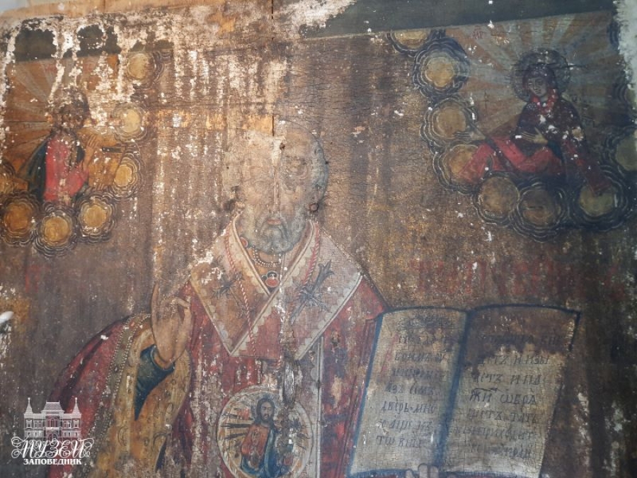 В итоге все получилось. Перед реставраторами в полный рост предстал святой Николай Чудотворец. В левой руке святого – Евангелие. В верхней части иконы – Иисус Христос и Богородица. Небольшие сюжеты, видимо из жизни святого, есть и в нижней части иконы. Понято это пока трудно, потому что, по словам реставраторов, живопись сейчас под темным слоем олифы, есть места, где красочный слой утрачен полностью. Кроме того, кое-где открылись ожоги, возможно, от свечей или лампад.
