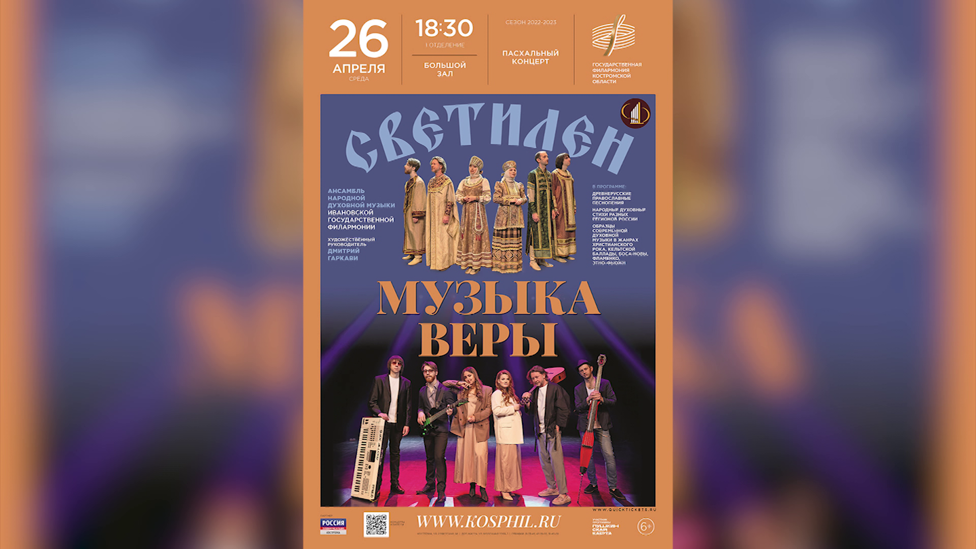 Гости представят необычную пасхальную программу: древнерусские православные песнопения, народные духовные стихи разных регионов России. А также произведения в жанрах христианского рока, кельтской баллады, босса-новы, фламенко и этно-фьюжн. Артисты исполнят их на инструментах, создающих уникальную атмосферу, пронизанную духом Христова Воскресения. Так, в концерте прозвучат колёсная лира, окарина, дудук, думбек, акустическая и электрогитары, контрабас и клавишные инструменты, которые отправят зрителя в музыкальное путешествие по самым разным странам и эпохам. Художественный руководитель ансамбля - Дмитрий Гаркави. Хормейстер - Илья Саблин. Билеты можно приобрести в кассе и на сайте Филармонии, в том числе – по Пушкинской карте.