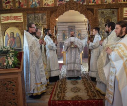 После заамвонной молитвы было совершено славление чествуемому святому.