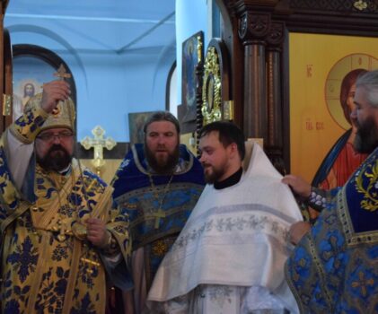 После Херувимской песни была совершена священническая хиротония. В сан иерея был рукоположен диакон Сергий Юдинцев.
