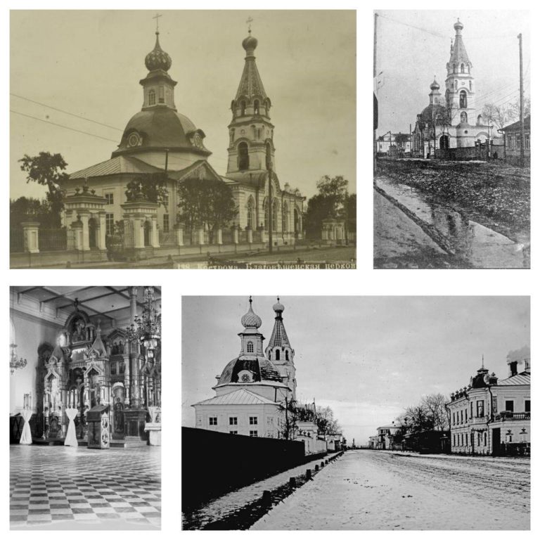 «Церковь возведена в 1790-1804 г., на месте сгоревшего деревянного храма Николы Ратного. Строительством церкви руководил священник Федор Островский, дед великого русского драматурга. Храм был выстроен в стиле раннего классицизма с чертами барокко, которые главным образом ощущались в объемной композиции здания. В 1817-1818 гг. к храму по проекту арх. А. В. Красильникова пристроили колокольню. В 1904 г. трапезная церкви была расширена с устройством в ней двух приделов (один из них, в честь Николая Чудотворца, дал второе название храму), а вместо старой колокольни была возведена новая, более высокая, с шатровым завершением», — рассказывают в Инспекции по охране культурного наследия Костромской области.